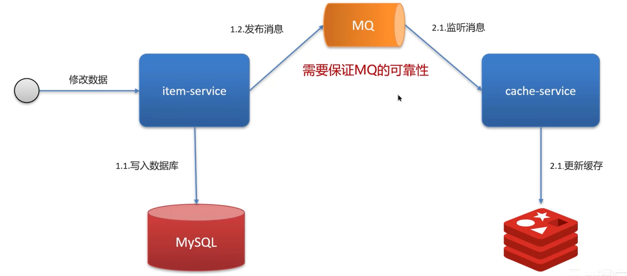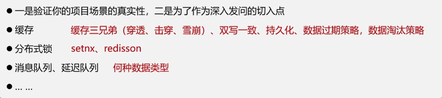 一定要先介绍业务背景!!!一致性高,或者延迟一致的需求要选择不同方案。比如:我的点评系统对一致性要求没那么高所以采用异步通知方法。然后面试官肯定会再问异步通知具体实现。