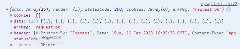 我们输出一下 res,看看成功会返回什么信息。调试器里的 console 输出: