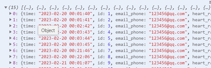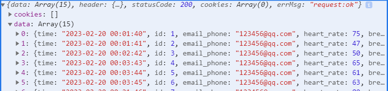 然后比如我们要获取其中的 time 值,就是 res.data[0].time, res.data[1].time... res.dat[14].time。