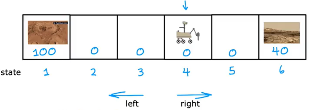 假设探测器采取的行动是左左左,那么它就会最终获得 100 点奖励。假设采取的行动是右右,就会获取 40 点奖励(当然这里我们简化了代价函数,探测器能源并不是无尽的。后面会补充)。