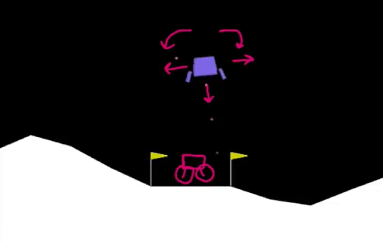 比如主推进器,可能我们的策略并不会经常性尝试使用它(作用不明显),但是引入一些随机尝试后也许就发现主推进器在某些情况下会取得不错的效果,那么 Q 函数就会更新这一部分让其获得更大的权重。95%的指定行动部分就是贪心部分,而 5%的部分是探索部分。