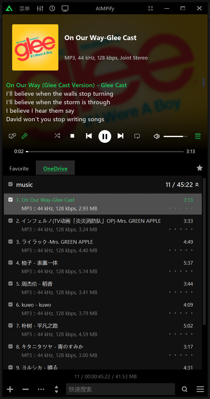 好的那我就用云盘同步,我比较常用的就是自己的 OneDrive 云盘。把音乐文件夹放到云盘中,再在 AIMP 中打开该文件夹作为播放列表即可。